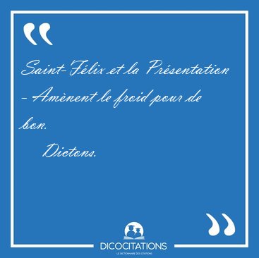 ![Saint-Félix et la Présentation - Amènent le froid pour de [...] - Dictons... Saint-Félix et la Présentation - Amènent le froid pour de [...] - Dictons...](/imagescitations/Saint-Felix_et_la_Presentation_-_Amenent_le_froid_pour_de_-_Dictons-16979.jpg)