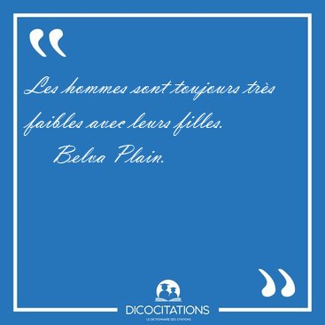 ![Les hommes sont toujours très faibles avec leurs filles. [...] - Belva Plain... Les hommes sont toujours très faibles avec leurs filles. [...] - Belva Plain...](/imagescitations/Les_hommes_sont_toujours_tres_faibles_avec_leurs_filles_-_Belva_Plain-169834.jpg)