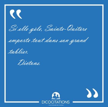 ![Si elle gèle, Sainte-Quitère emporte tout dans son grand [...] - Dictons... Si elle gèle, Sainte-Quitère emporte tout dans son grand [...] - Dictons...](/imagescitations/Si_elle_gele_Sainte-Quitere_emporte_tout_dans_son_grand_-_Dictons-16994.jpg)