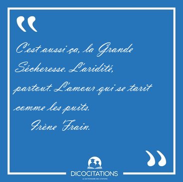 ![C'est aussi ça, la Grande Sécheresse. L'aridité, partout. [...] - Irène Frain... C'est aussi ça, la Grande Sécheresse. L'aridité, partout. [...] - Irène Frain...](/imagescitations/C_est_aussi_ca_la_Grande_Secheresse_L_aridite_partout_-_Irene_Frain-170802.jpg)