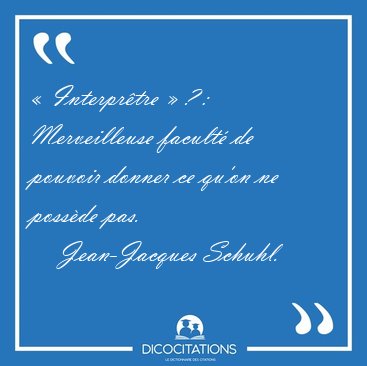 ![« Interprêtre » ? : Merveilleuse faculté de pouvoir donner ce [...] - Jean-Jacques Schuhl... « Interprêtre » ? : Merveilleuse faculté de pouvoir donner ce [...] - Jean-Jacques Schuhl...](/imagescitations/_Interpretre_Merveilleuse_faculte_de_pouvoir_donner_ce_-_Jean-Jacques_Schuhl-170862.jpg)