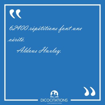 La citation peut s'écrire en lettres « Soixante-deux mille quatre cents répétitions font une vérité. Quels idiots! » ou en chiffres « 62400 répétitions font une vérité. Quels idiots! »