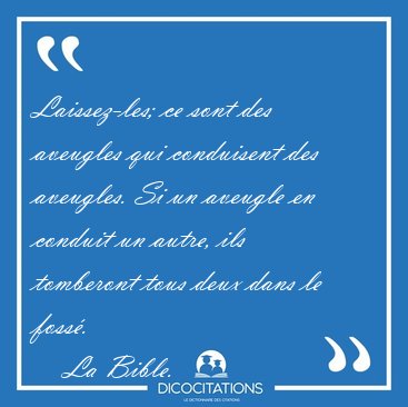 ![Laissez-les; ce sont des aveugles qui conduisent des aveugles. [...] - La Bible... Laissez-les; ce sont des aveugles qui conduisent des aveugles. [...] - La Bible...](/imagescitations/Laissez-les_ce_sont_des_aveugles_qui_conduisent_des_aveugles_-_La_Bible-17124.jpg)