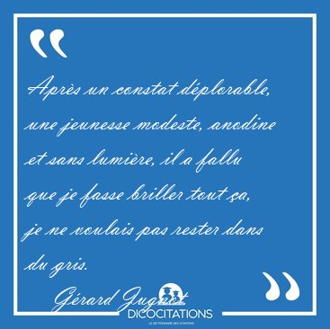 ![Après un constat déplorable, une jeunesse modeste, anodine et [...] - Gérard Jugnot... Après un constat déplorable, une jeunesse modeste, anodine et [...] - Gérard Jugnot...](/imagescitations/Apres_un_constat_deplorable_une_jeunesse_modeste_anodine_et_-_Gerard_Jugnot-171359.jpg)
