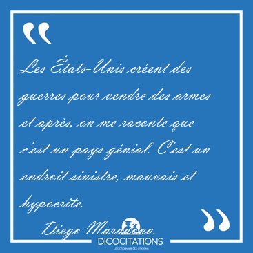 ![Les États-Unis créent des guerres pour vendre des armes et [...] - Diego Maradona... Les États-Unis créent des guerres pour vendre des armes et [...] - Diego Maradona...](/imagescitations/Les_Etats-Unis_creent_des_guerres_pour_vendre_des_armes_et_-_Diego_Maradona-171537.jpg)