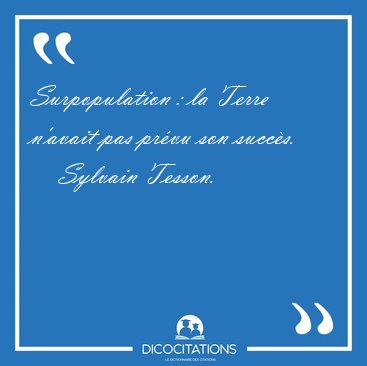 ![Surpopulation : la Terre n'avait pas prévu son [...] - Sylvain Tesson... Surpopulation : la Terre n'avait pas prévu son [...] - Sylvain Tesson...](/imagescitations/Surpopulation_la_Terre_n_avait_pas_prevu_son_-_Sylvain_Tesson-171631.jpg)