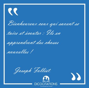 Recherche de citations : Bienheureux savent / savent écouter / Bienheureux écouter