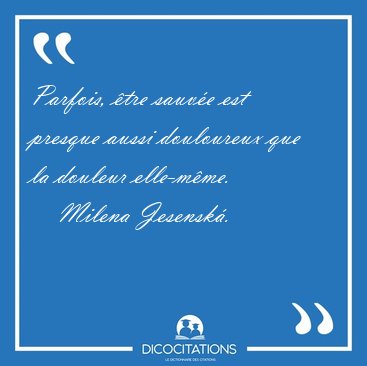 ![Parfois, être sauvée est presque aussi douloureux que la douleur [...] - Milena Jesenská... Parfois, être sauvée est presque aussi douloureux que la douleur [...] - Milena Jesenská...](/imagescitations/Parfois_etre_sauvee_est_presque_aussi_douloureux_que_la_douleur_-_Milena_Jesenska-172453.jpg)