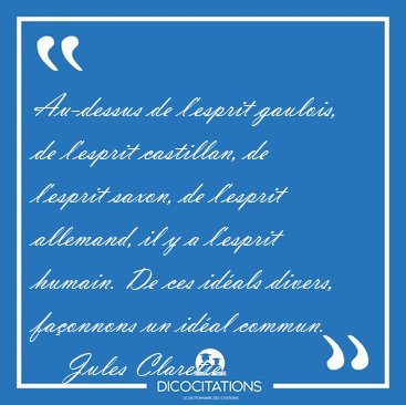 Au-dessus de l'esprit gaulois, de l'esprit castillan, de l'esprit saxon, de l'esprit allemand, il y a l'esprit humain. De ces idéals divers, façonnons un idéal commun.