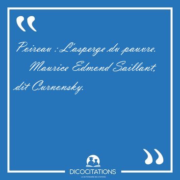 ![Poireau : L'asperge du [...] - Maurice Edmond Saillant, dit Curnonsky... Poireau : L'asperge du [...] - Maurice Edmond Saillant, dit Curnonsky...](/imagescitations/Poireau_L_asperge_du_-_Maurice_Edmond_Saillant_dit_Curnonsky-172556.jpg)