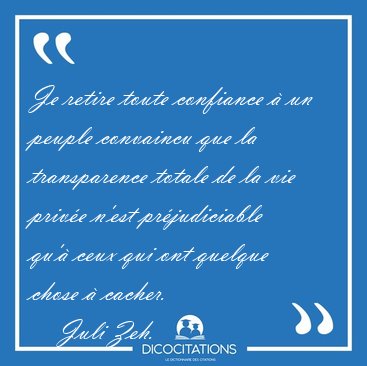 Je retire toute confiance à un peuple convaincu que la transparence totale de la vie privée n'est préjudiciable qu'à ceux qui ont quelque chose à cacher.