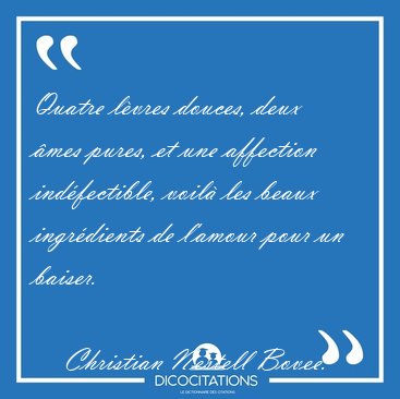 ![Quatre lèvres douces, deux âmes pures, et une affection [...] - Christian Nestell Bovee... Quatre lèvres douces, deux âmes pures, et une affection [...] - Christian Nestell Bovee...](/imagescitations/Quatre_levres_douces_deux_ames_pures_et_une_affection_-_Christian_Nestell_Bovee-173890.jpg)