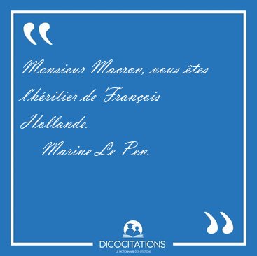 ![Monsieur Macron, vous êtes l’héritier de François [...] - Marine Le Pen... Monsieur Macron, vous êtes l’héritier de François [...] - Marine Le Pen...](/imagescitations/Monsieur_Macron_vous_etes_l_heritier_de_Francois_-_Marine_Le_Pen-174479.jpg)