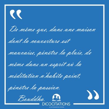 De même que, dans une maison dont la couverture est mauvaise, pénètre la pluie, de même dans un esprit où la méditation n’habite point, pénètre la passion.