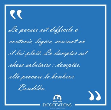 La pensée est difficile à contenir, légère, courant où il lui plaît. La dompter est chose salutaire ; domptée, elle procure le bonheur.