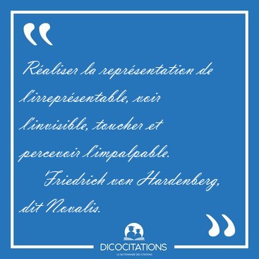 ![Réaliser la représentation de l'irreprésentable, voir [...] - Friedrich von Hardenberg, dit Novalis... Réaliser la représentation de l'irreprésentable, voir [...] - Friedrich von Hardenberg, dit Novalis...](/imagescitations/Realiser_la_representation_de_l_irrepresentable_voir_-_Friedrich_von_Hardenberg_dit_Novalis-17521.jpg)