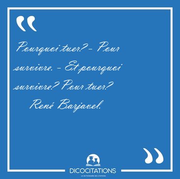 ![Pourquoi tuer? - Pour survivre. - Et pourquoi survivre? Pour [...] - René Barjavel... Pourquoi tuer? - Pour survivre. - Et pourquoi survivre? Pour [...] - René Barjavel...](/imagescitations/Pourquoi_tuer_-_Pour_survivre_-_Et_pourquoi_survivre_Pour_-_Rene_Barjavel-17592.jpg)