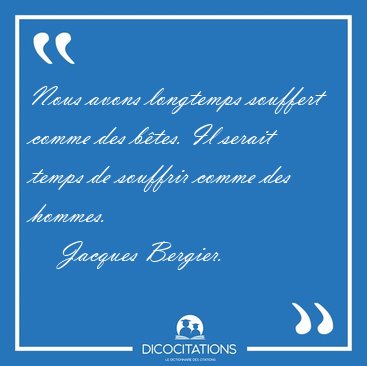 ![Nous avons longtemps souffert comme des bêtes. Il serait temps [...] - Jacques Bergier... Nous avons longtemps souffert comme des bêtes. Il serait temps [...] - Jacques Bergier...](/imagescitations/Nous_avons_longtemps_souffert_comme_des_betes_Il_serait_temps_-_Jacques_Bergier-17779.jpg)