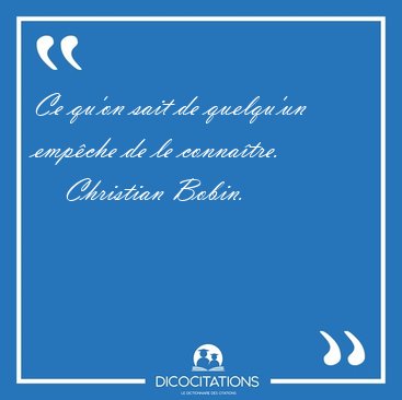 Ce qu'on sait de quelqu'un empêche de le connaître.