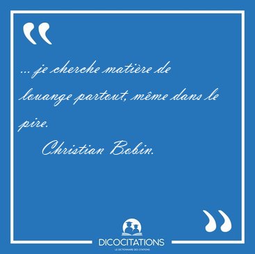 ... je cherche matière de louange partout, même dans le pire.