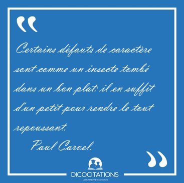 ![Certains défauts de caractère sont comme un insecte tombé dans [...] - Paul Carvel... Certains défauts de caractère sont comme un insecte tombé dans [...] - Paul Carvel...](/imagescitations/Certains_defauts_de_caractere_sont_comme_un_insecte_tombe_dans_-_Paul_Carvel-19036.jpg)