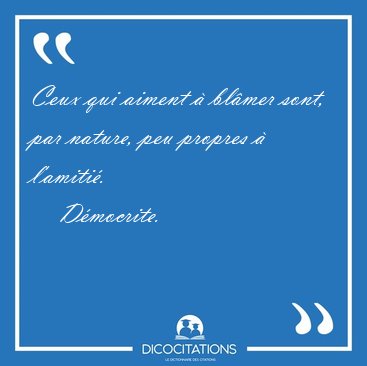 Ceux qui aiment à blâmer sont, par nature, peu propres à l'amitié.