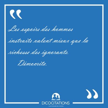 Les espoirs des hommes instruits valent mieux que la richesse des ignorants.