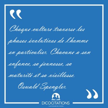 Chaque culture traverse les phases évolutives de l'homme en particulier. Chacune a son enfance, sa jeunesse, sa maturité et sa vieillesse.