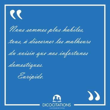 Nous sommes plus habiles, tous, à discerner les malheurs du voisin que nos infortunes domestiques.