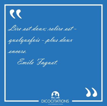 ![Lire est doux; relire est - quelquefois - plus doux [...] - Emile Faguet... Lire est doux; relire est - quelquefois - plus doux [...] - Emile Faguet...](/imagescitations/Lire_est_doux_relire_est_-_quelquefois_-_plus_doux_-_Emile_Faguet-20309.jpg)