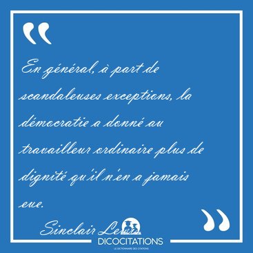 En général, à part de scandaleuses exceptions, la démocratie a donné au travailleur ordinaire plus de dignité qu'il n'en a jamais eue.