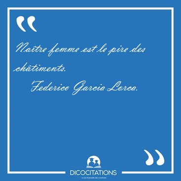 ![Naître femme est le pire des [...] - Federico Garcia Lorca... Naître femme est le pire des [...] - Federico Garcia Lorca...](/imagescitations/Naitre_femme_est_le_pire_des_-_Federico_Garcia_Lorca-20499.jpg)
