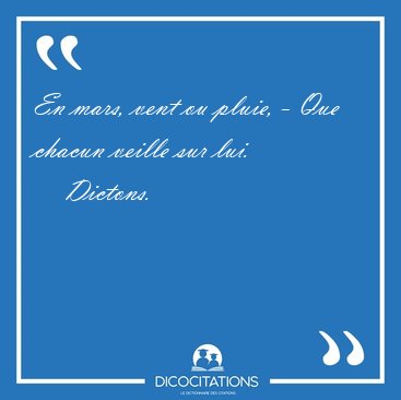 ![En mars, vent ou pluie, - Que chacun veille sur [...] - Dictons... En mars, vent ou pluie, - Que chacun veille sur [...] - Dictons...](/imagescitations/En_mars_vent_ou_pluie_-_Que_chacun_veille_sur_-_Dictons-20531.jpg)