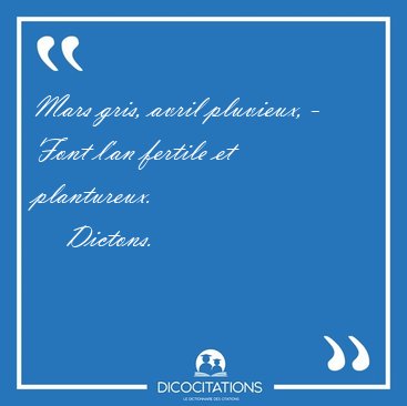 ![Mars gris, avril pluvieux, - Font l'an fertile et [...] - Dictons... Mars gris, avril pluvieux, - Font l'an fertile et [...] - Dictons...](/imagescitations/Mars_gris_avril_pluvieux_-_Font_l_an_fertile_et_-_Dictons-20557.jpg)