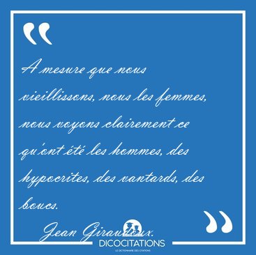![A mesure que nous vieillissons, nous les femmes, nous voyons [...] - Jean Giraudoux... A mesure que nous vieillissons, nous les femmes, nous voyons [...] - Jean Giraudoux...](/imagescitations/A_mesure_que_nous_vieillissons_nous_les_femmes_nous_voyons_-_Jean_Giraudoux-20743.jpg)