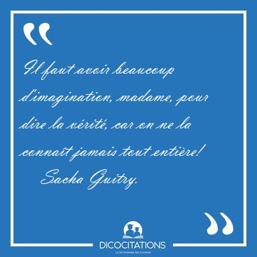 Il faut avoir beaucoup d'imagination, madame, pour dire la vérité, car on ne la connaît jamais tout entière!