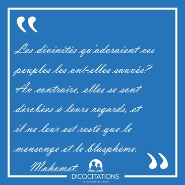 ![Les divinités qu'adoraient ces peuples les ont-elles sauvés? Au [...] - Mahomet... Les divinités qu'adoraient ces peuples les ont-elles sauvés? Au [...] - Mahomet...](/imagescitations/Les_divinites_qu_adoraient_ces_peuples_les_ont-elles_sauves_Au_-_Mahomet-21357.jpg)
