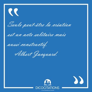 Seule peut-être la création est un acte solitaire mais aussi constructif.