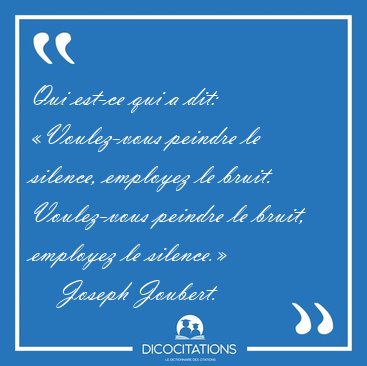 Qui est-ce qui a dit: «Voulez-vous peindre le silence, employez le bruit. Voulez-vous peindre le bruit, employez le silence.»