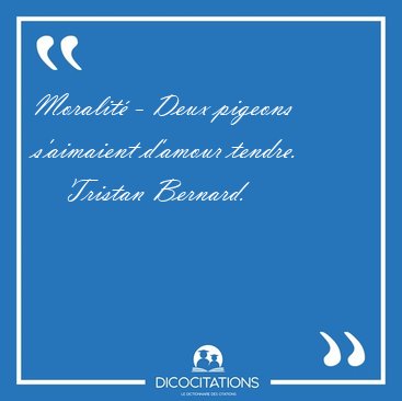![Moralité - Deux pigeons s'aimaient d'amour [...] - Tristan Bernard... Moralité - Deux pigeons s'aimaient d'amour [...] - Tristan Bernard...](/imagescitations/Moralite_-_Deux_pigeons_s_aimaient_d_amour_-_Tristan_Bernard-2201.jpg)