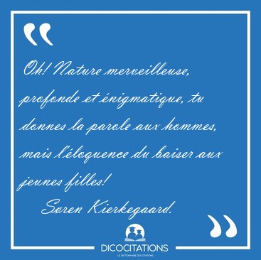 ![Oh! Nature merveilleuse, profonde et énigmatique, tu donnes la [...] - Søren Kierkegaard... Oh! Nature merveilleuse, profonde et énigmatique, tu donnes la [...] - Søren Kierkegaard...](/imagescitations/Oh_Nature_merveilleuse_profonde_et_enigmatique_tu_donnes_la_-_S_ren_Kierkegaard-22093.jpg)