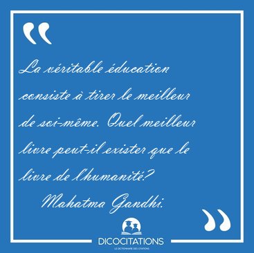 ![La véritable éducation consiste à tirer le meilleur de soi-même. [...] - Mahatma Gandhi... La véritable éducation consiste à tirer le meilleur de soi-même. [...] - Mahatma Gandhi...](/imagescitations/La_veritable_education_consiste_a_tirer_le_meilleur_de_soi-meme_-_Mahatma_Gandhi-22533.jpg)