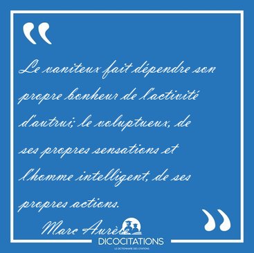 Le vaniteux fait dépendre son propre bonheur de l'activité d'autrui; le voluptueux, de ses propres sensations et l'homme intelligent, de ses propres actions.