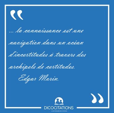 ... la connaissance est une navigation dans un océan d'incertitudes à travers des archipels de certitudes.