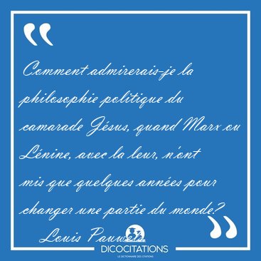 Comment admirerais-je la philosophie politique du camarade Jésus, quand Marx ou Lénine, avec la leur, n'ont mis que quelques années pour changer une partie du monde?