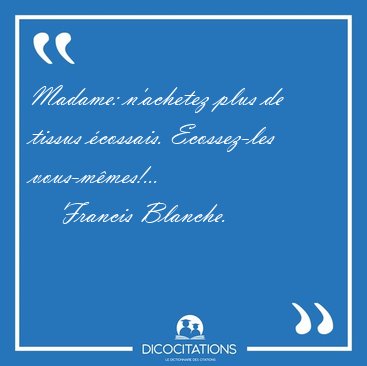 ![Madame: n'achetez plus de tissus écossais. Ecossez-les [...] - Francis Blanche... Madame: n'achetez plus de tissus écossais. Ecossez-les [...] - Francis Blanche...](/imagescitations/Madame_n_achetez_plus_de_tissus_ecossais_Ecossez-les_-_Francis_Blanche-2508.jpg)