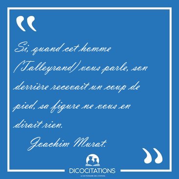 Si, quand cet homme (Talleyrand) vous parle, son derrière recevait un coup de pied, sa figure ne vous en dirait rien.