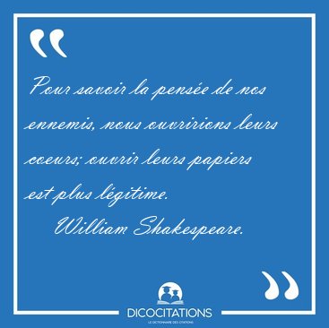 ![Pour savoir la pensée de nos ennemis, nous ouvririons leurs [...] - William Shakespeare... Pour savoir la pensée de nos ennemis, nous ouvririons leurs [...] - William Shakespeare...](/imagescitations/Pour_savoir_la_pensee_de_nos_ennemis_nous_ouvririons_leurs_-_William_Shakespeare-25492.jpg)