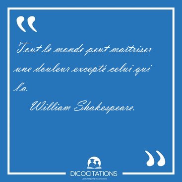 ![Tout le monde peut maîtriser une douleur excepté celui qui [...] - William Shakespeare... Tout le monde peut maîtriser une douleur excepté celui qui [...] - William Shakespeare...](/imagescitations/Tout_le_monde_peut_maitriser_une_douleur_excepte_celui_qui_-_William_Shakespeare-25517.jpg)