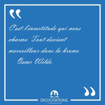 ![C'est l'incertitude qui nous charme. Tout devient merveilleux [...] - Oscar Wilde... C'est l'incertitude qui nous charme. Tout devient merveilleux [...] - Oscar Wilde...](/imagescitations/C_est_l_incertitude_qui_nous_charme_Tout_devient_merveilleux_-_Oscar_Wilde-26540.jpg)